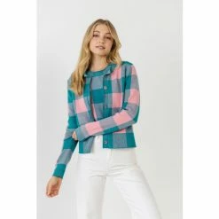 English Factory Gingham Cardigan Sweatshirts & Sweaters Pink/emerald