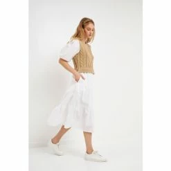 English Factory Mixed Media Cable Knit Down Midi Dress Dresses Heather Grey/white