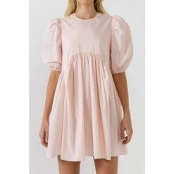 Introducing the asymmetrical baby doll mini with back spaghetti ties! This darling little number is sure to become your new favorite. Made from a beautiful solid poplin fabric, it features a baby doll silhouette with a curved waist and mini length. The short puff sleeves and back double spaghetti tie add a playful and flirty touch. Whether you’re dressing up for a special occasion or just looking for a fun and flirty day-to-day look, this dress is sure to turn heads.