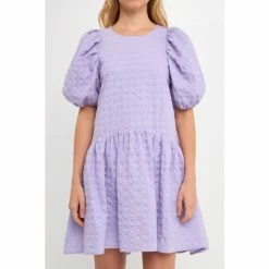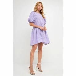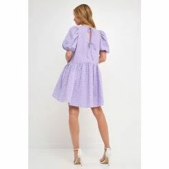 This eye-catching dress features a jacquard fabric, back spaghetti tie, puff half sleeves, high low hemline, and round neckline. Plus, it has handy side pockets for storing your essentials. Whether you’re headed to a party or a special event, this dress is sure to turn heads.