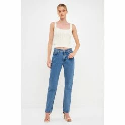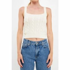 Bundle up in style with this Cable Knit Tank Top. This soft and stylish tank top is perfect for fall weather. The cable knit design adds a touch of warmth, while the fitted shape and square neckline keep you looking your best. Pair it with a cardigan or jacket for a cozy layered look.