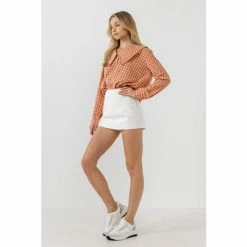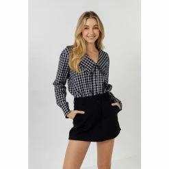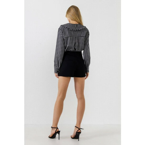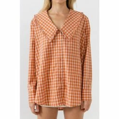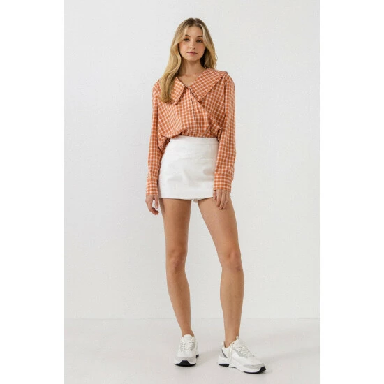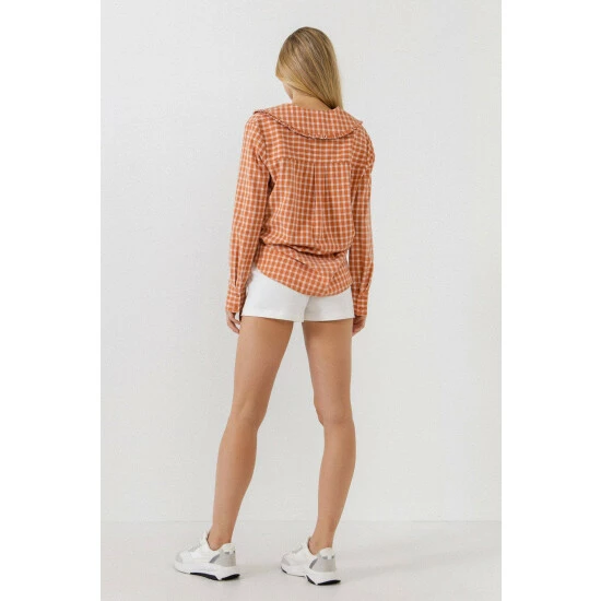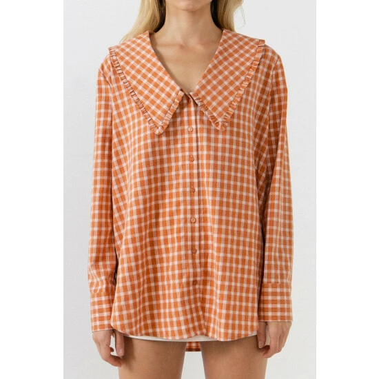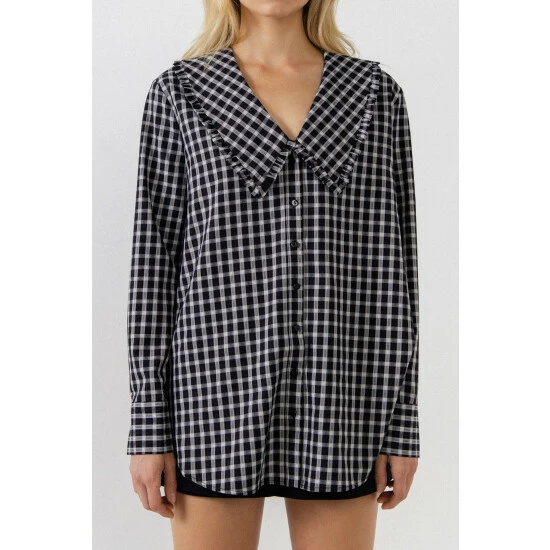 – Gingham print- Long sleeves- Collar detail- Buttons down