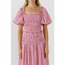 Add a little sass to your look with this check smocked puff sleeves top. The short puff sleeves and smocked bodice give this top a fun and flirty look. The slightly cropped length pairs perfectly with high-waisted bottoms. The fully lined top ensures a comfortable and flattering fit. Whether you’re dressing up for a night out or keeping it casual for a day in, this top is sure to turn heads.