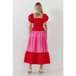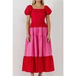 Introducing our color block puff sleeve maxi dress! This dress is perfect for any special occasion, from weddings to birthday parties. The puff sleeves and square neckline give it a feminine touch, while the color block design and tiered lower bodice add a sense of fun and playfulness. The partial smocked back and side zipper make it easy to slip on and off, while the tiered lower bodice ensures a flattering fit.