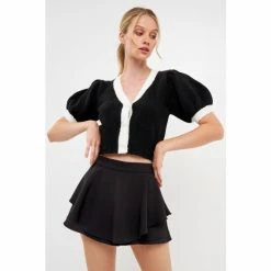 A little bit of luxury for your everyday wardrobe. A sweater that will take you through all the seasons. This color block number features short puff sleeves and a v-neckline, making it a versatile and stylish addition to your closet. Layer it up with a scarf in the winter, or wear it on its own during spring and summer. Either way, you’re sure to love this luxe sweater.