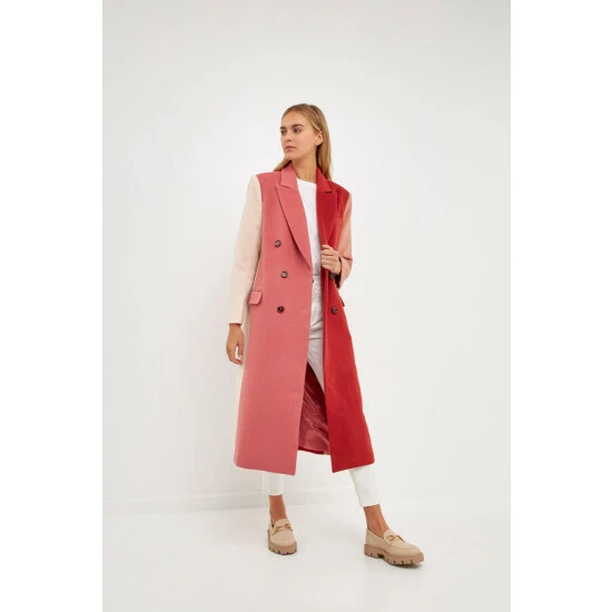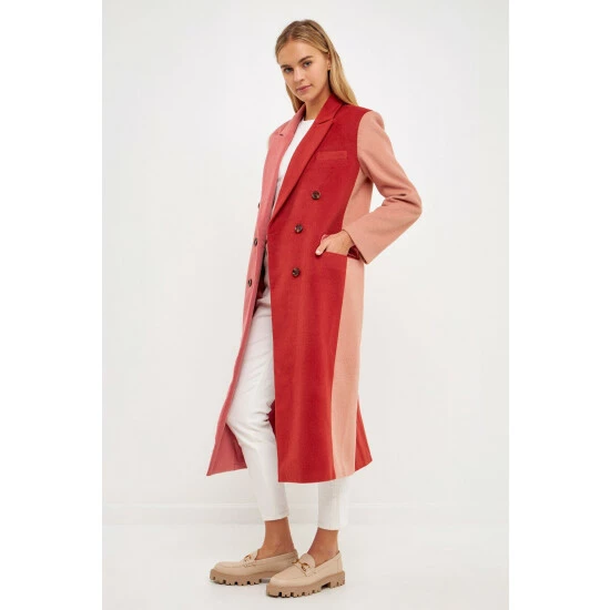 This color block trench coat is the perfect way to add a pop of color to your wardrobe. The long coat is perfect for those cold winter days. The long sleeve and flap pocket adds a touch of sophistication. The double-button closure keeps you warm and stylish.