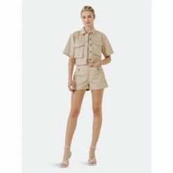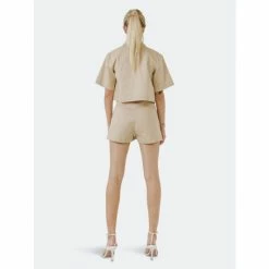 Cotton shorts are the perfect summer addition to your wardrobe. Made with 100% cotton, these beige shorts are both comfortable and stylish. A matching set jacket is also available, making them the perfect outfit for any summer occasion.