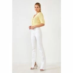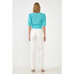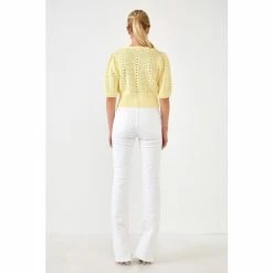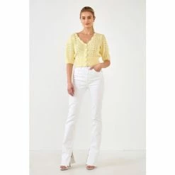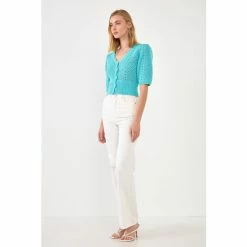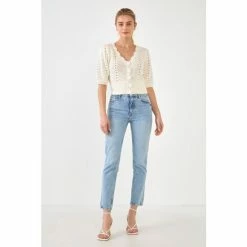 This cropped cardigan is an absolute must-have for your wardrobe. With a relaxed silhouette and a gorgeous crochet design, this cardigan is the perfect piece to dress up or down. You can even wear it over a dress for a fun spring look. This adorable crochet knit cropped cardigan makes for the perfect spring cardigan.