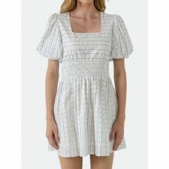 Looking for a summer dress that is as pretty as a flower? Look no further than our Floral Print Cotton Mini Dress! This sweet and feminine dress features a square neckline, short puff sleeves, and a mini length. The smocking at the waistline creates a flattering silhouette, while the fully lined skirt ensures a comfortable fit. Whether you’re attending a wedding or just strolling through the park, this dress is sure to turn heads.