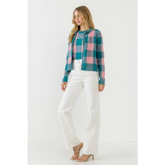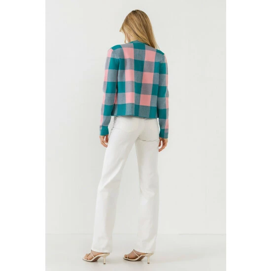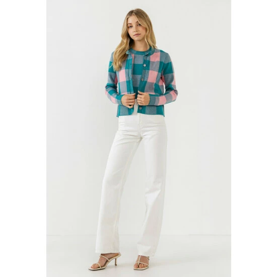This Gingham Cardigan by English Factory is a fall wardrobe staple that can easily stand up to the challenge of any workday. The soft cotton fabric feels great against the skin, and the classic gingham pattern is an added bonus. Wear it with a nice long sleeve shirt for a day at the office, or with some jeans for a more casual look.