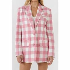 This gingham check blazer is perfect for any fashion-savvy woman. The print is trendy and the fit is classic, making it a versatile piece that can be worn throughout the year. Plus, the front pockets add a touch of functionality to this otherwise polished look.