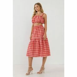 You’ll love the feel of this gingham midi skirt. The linen combo check is perfect for a summer day, and the elastic band ensures a comfortable and flattering fit. The single cutline and wide opening make this skirt easy to wear, and the side pockets are a handy addition.