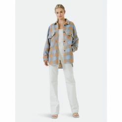 The perfect shacket for any occasion. This english factory gingham shacket has the added bonus of front double pockets. This is the perfect jacket to throw on over any outfit and it will be your go-to for this season.