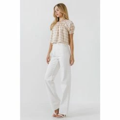 This gingham top is the perfect way to show off your casual style. The khaki-colored gingham print is perfect for any season, and the puff sleeves give it a touch of femininity. Made from 100% cotton, this top will keep you comfortable all day long.