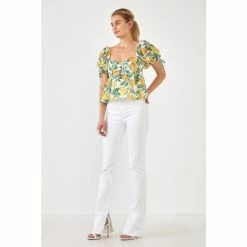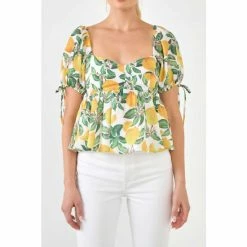 A fruity addition to your warm-weather wardrobe, this lemon print puff sleeve top is sure to make a statement. With a sweatheart neckline and short puff sleeves, this top is perfect for a day of fun in the sun. The peplum waist and backside smocking detail create a flattering silhouette, while the tie detail at the sleeve adds a touch of whimsy. Lined for comfort, this top is sure to be a staple in your summer wardrobe.