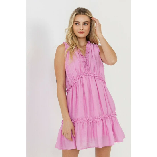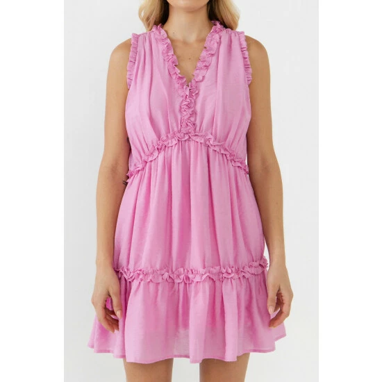 Dare to bare in this flirty mini dress. This little number is sure to turn heads. With a flung neckline and pretty ruffle detail, it’s perfect for any summer occasion. can’t wait to wear this mini dress with strappy sandals and a wide brimmed hat.