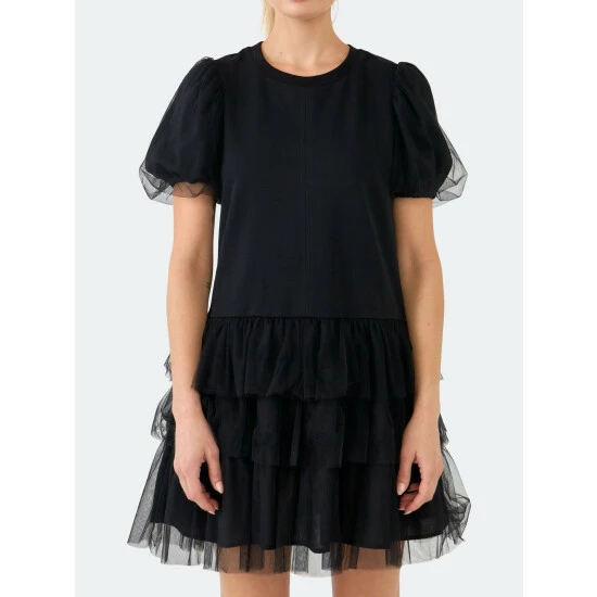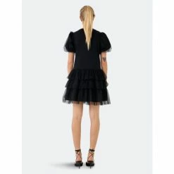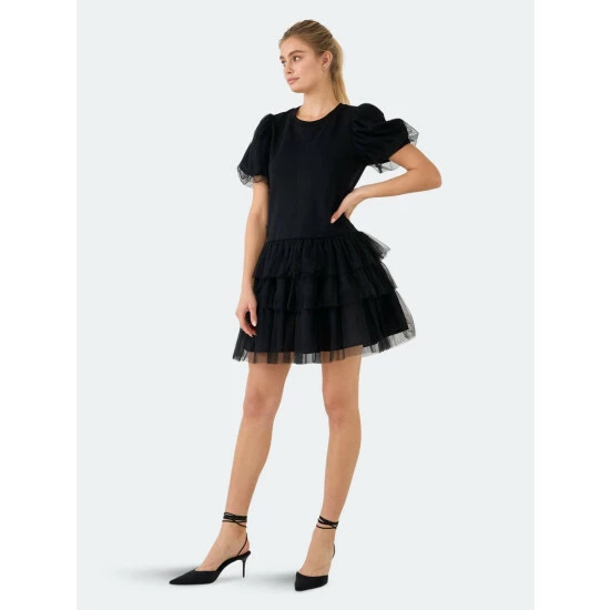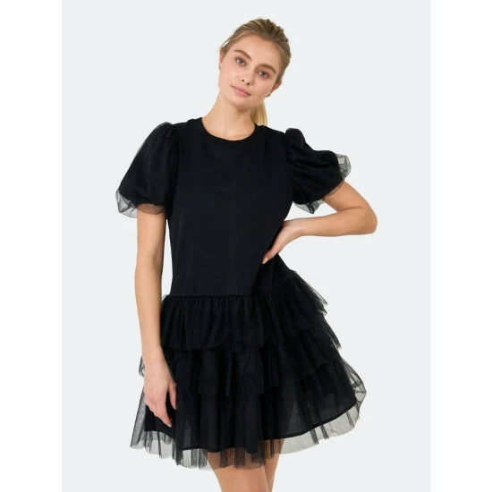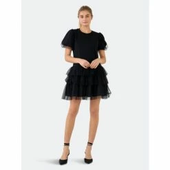 Unleash your inner ballerina with this sleek black dress. The ideal dress for an evening out, this design features a round neckline and elegant puff sleeves. It’s also designed to flatter your figure. This ballerina inspired dress will keep you comfortable while making a statement. Wear with a pair of black heels to dress it up or pair with sneakers to stay casual.
