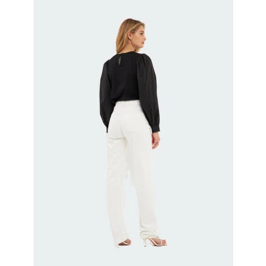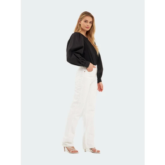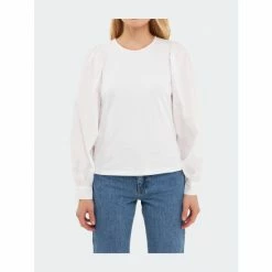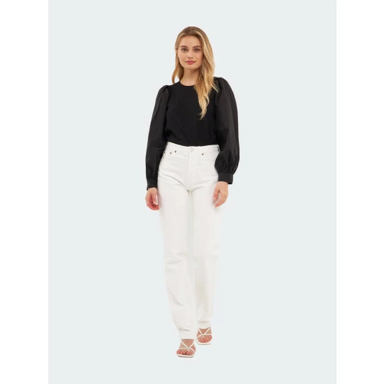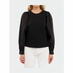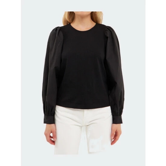 A modern take on the classic puff sleeve top, this piece is sure to turn heads. The round neckline and button closures at the back and cuff add a touch of sophistication, while the Mixed Media Puff Long Sleeve Top allows you to move freely and comfortably. Whether you’re dressing up for a special occasion or simply want to add a pop of color to your everyday look, this top is a must-have in your wardrobe.