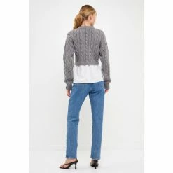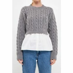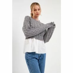 This modern sweater is perfect for your everyday style. With a cable knit and poplin contrast, this sweater is a must-have for any fashionista. The relaxed fit and round neckline make it comfortable and stylish. Dress up or dress down this versatile piece. It’s the perfect addition to your winter wardrobe.