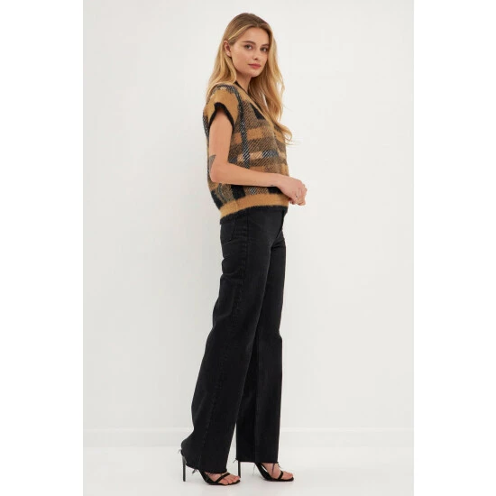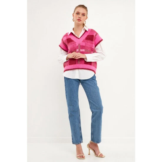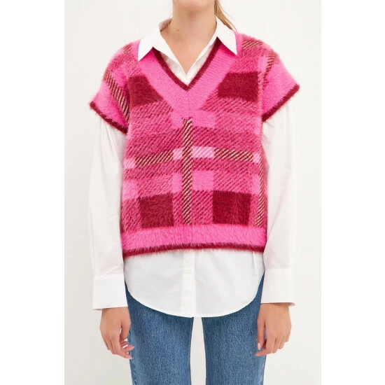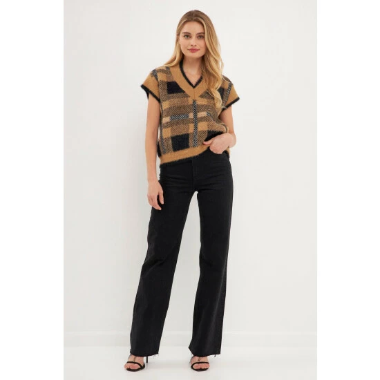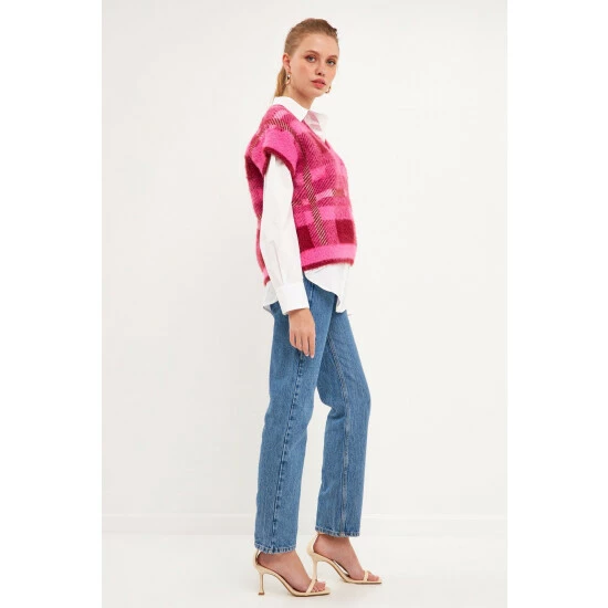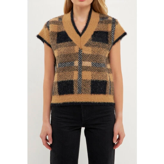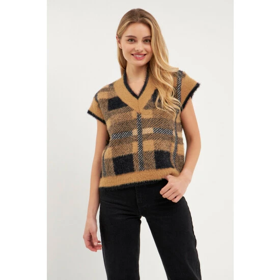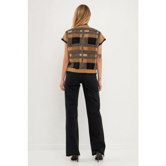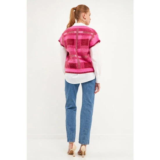 The perfect way to transition your style into winter. This Mohair Vest is the softest, most comfortable piece you’ll ever wear. With a loose fit and v-neckline, it’s ideal for layering over shirts and blouses. The plaid print adds a touch of classic style, while the mohair fabric ensures you’ll stay warm all winter long.