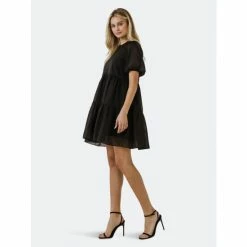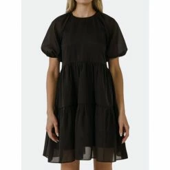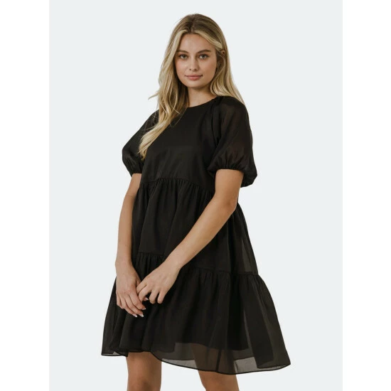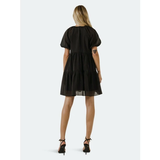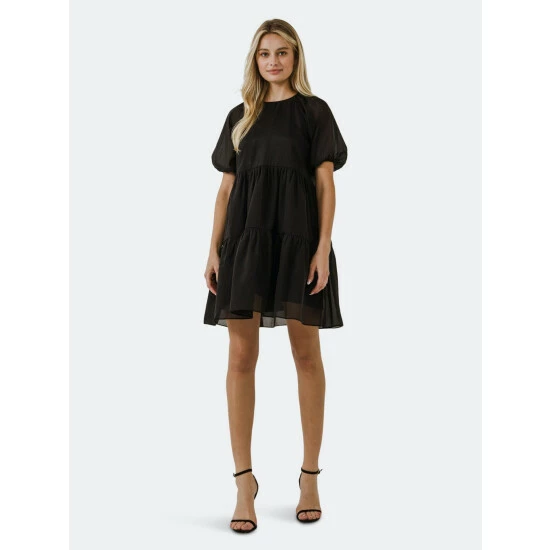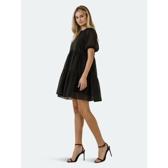 This elegant babydoll dress will add a touch of femininity to any outfit. With its delicate puffy sleeves and feminine silhouette, this dress is perfect for any occasion. Whether you’re dressing up or dressing down, this mini dress is the perfect addition to your wardrobe. Available in black, this dress is perfect for any occasion.