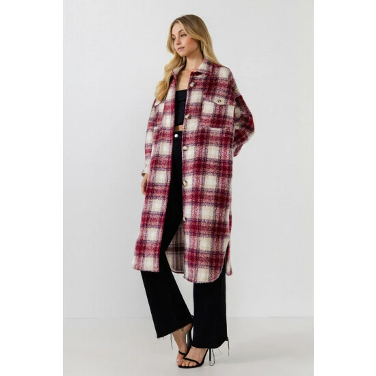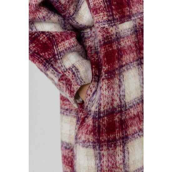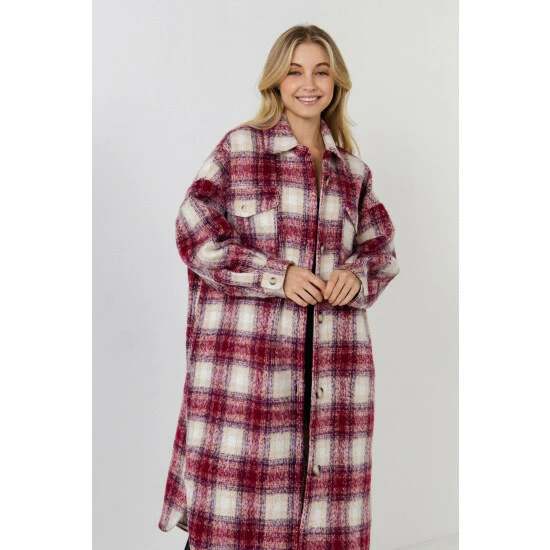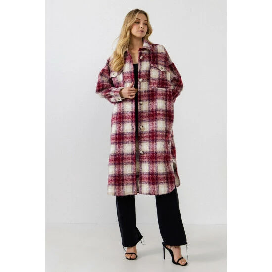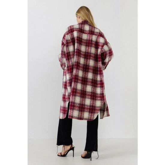 – Plaid check- Oversize fit- Long length- Pockets- Lining- Total length: 44.50″- Bust: 48″