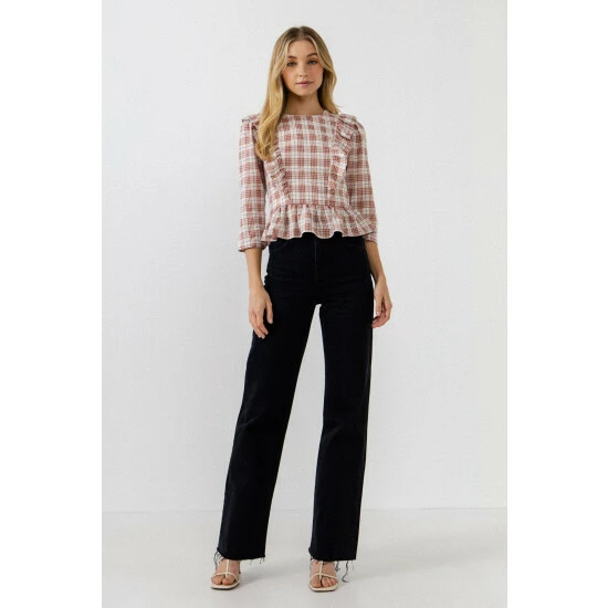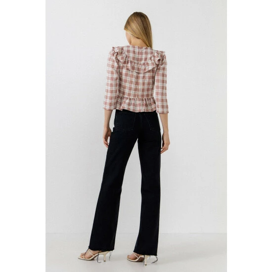 A trendy blouse with ruffle detail finished off with an invisible zipper on the back. An essential item for every fashionable woman who wants to look good on the go.