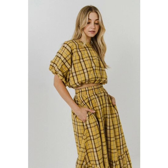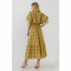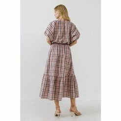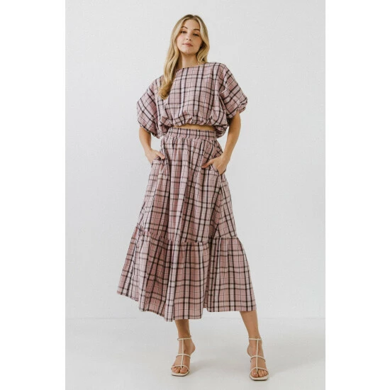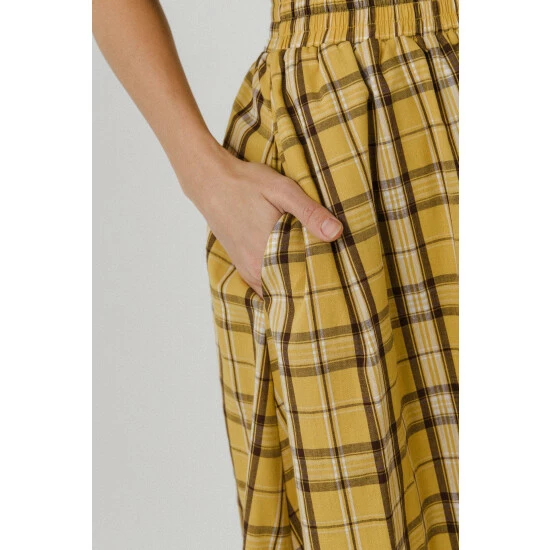 – Check print- Elastic at waistline- Side pockets- Maxi length- Exclusive of elastic- Height: 5’9″ / (175cm)- Bust: 34″ / (86cm)- Waist: 26″(67cm)- Hip 35″(89cm)- Total length: 37″- Waist: 27″