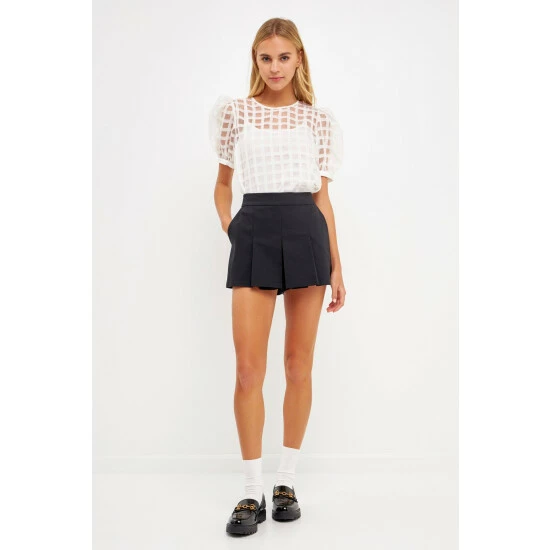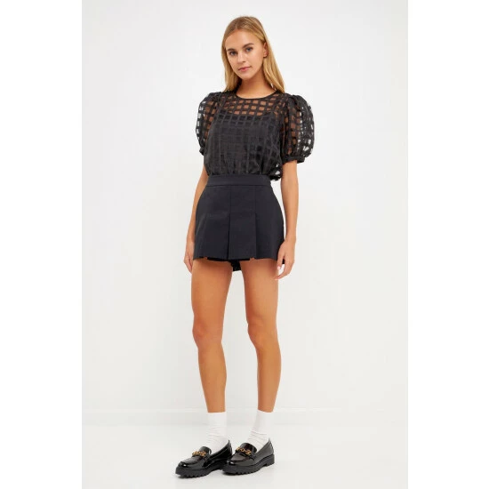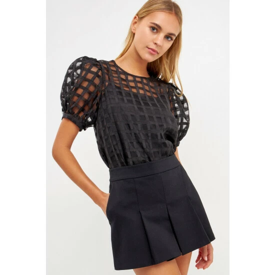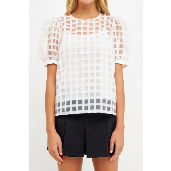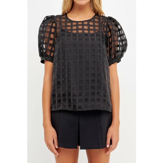 Up your style game with this Gridded See Through Top. With a round neckline and puff sleeves, this top is perfect for a day out or a night on the town. The back zipper gives this top a little edge while the gridded fabric keeps it classy. You’ll love the way you look and feel in this top.