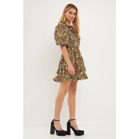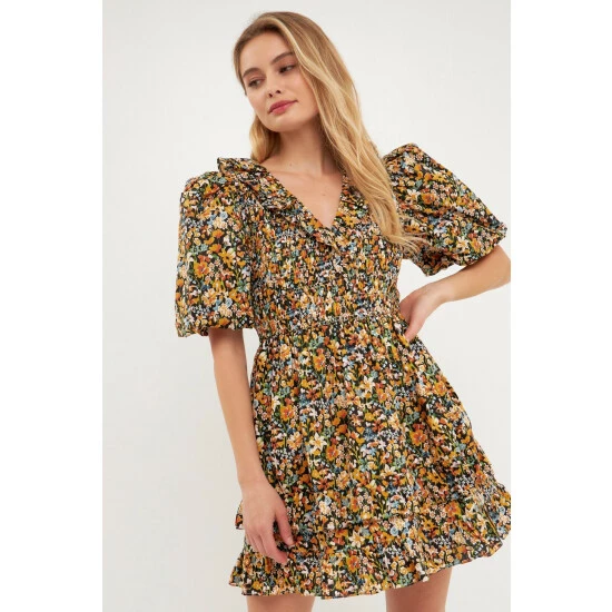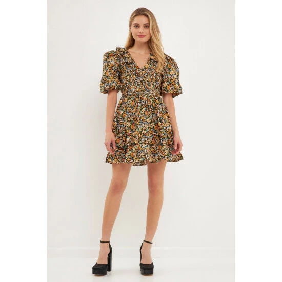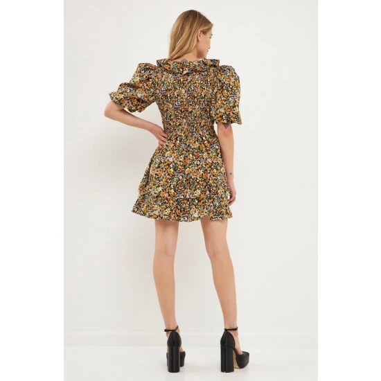 The floral print trend is in full bloom. This mini dress is the perfect way to show your love for all things floral. With a plunging V-neckline and ruffle detail, it adds just the right amount of femininity to any outfit. Pair with sandals for a sweet daytime look or dress it up with heels for a night out on the town.