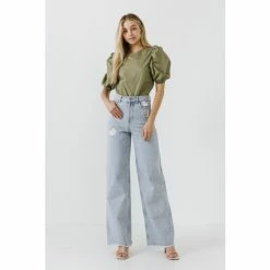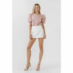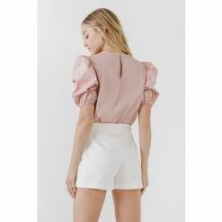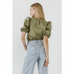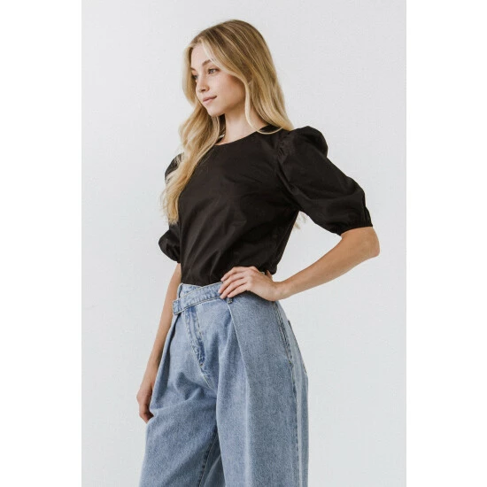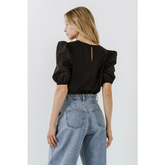 – Round neckline- Puffed short sleeves- Elastic at sleeve opening- Back keyhole with hidden button- Exclusive of elastic- Height: 5’9″ / (175cm)- Bust: 34″ / (86cm)- Waist: 26″(67cm)- Hip: 35″(89cm)- Total length: 24.25″- Bust: 38″