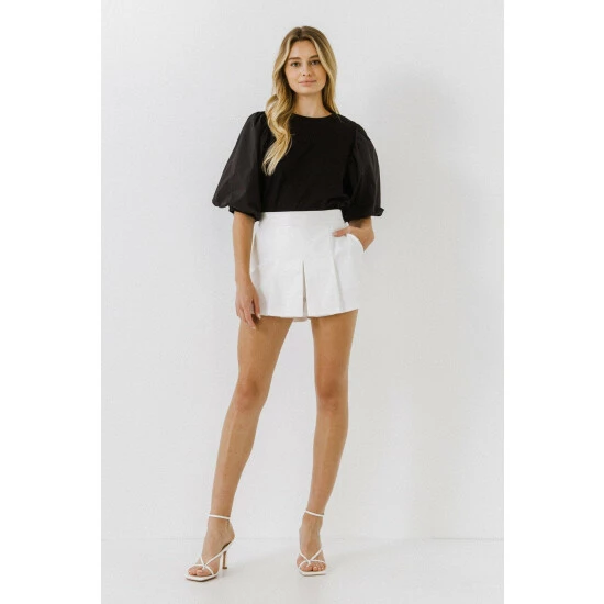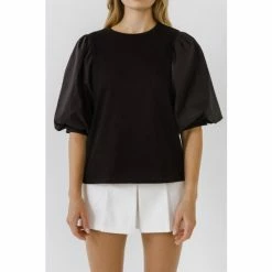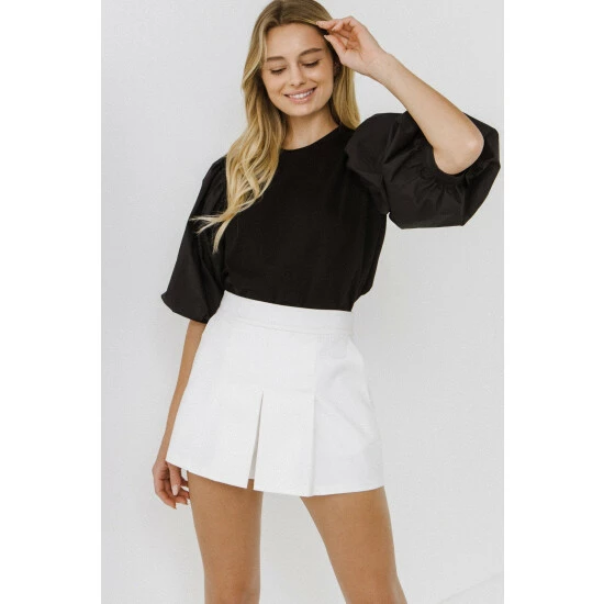The poplin sleeve combo t-shirt is an effortlessly simple way to elevate any outfit. This t-shirt features stunning puff sleeves, a round neckline, and will look amazing with shorts, a skirt, or pants! Truly a must have for any closet.
