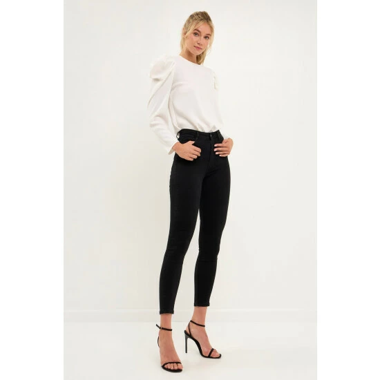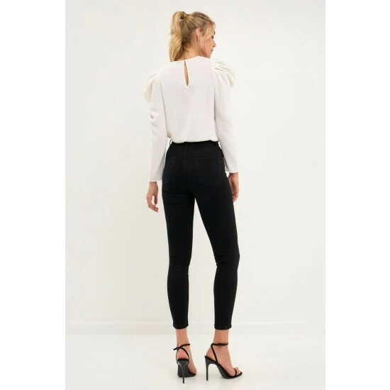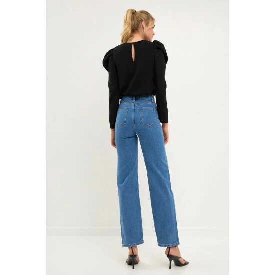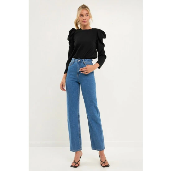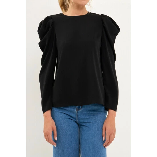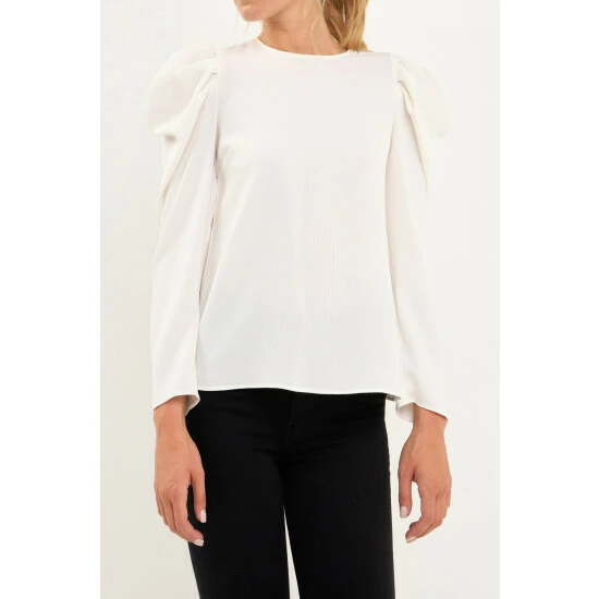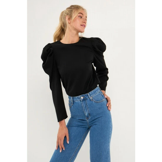 Elevate your style with this chic puff long-sleeve top. With its effortless round neckline and puff long sleeves, this top is a must-have for any fashionista. The pleated detail at the sleeves gives this top an extra touch of elegance. Style this top with a skirt or jeans for a look that will take you from day to night.