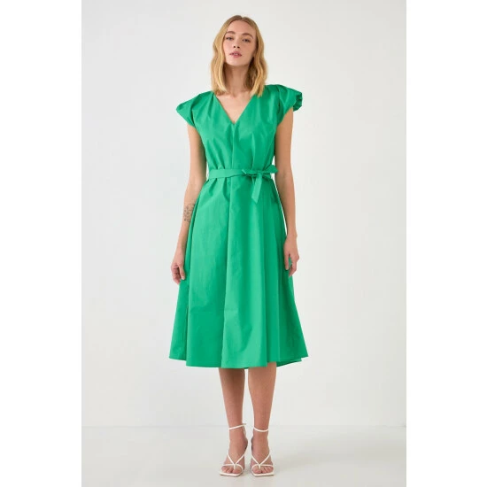 Looking for a unique and eye-catching dress? Then check out our Puffy Sleeve Midi Dress! This stylish piece is perfect for any special occasion, from weddings to parties. The midi length and short puffy sleeves give it a feminine look, while the detachable belt adds a touch of glamour. The dress is fully lined for a comfortable fit.