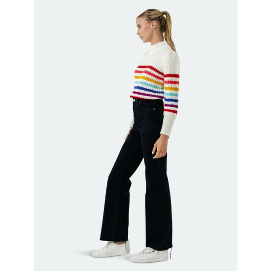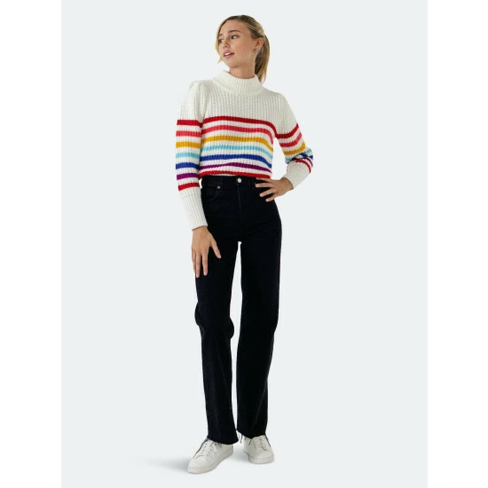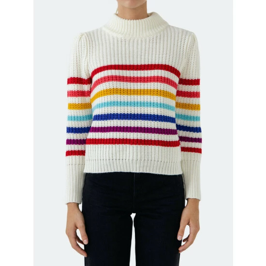 – Rainbow stripes- Mock neckline- Long sleeves- Ribbed edges- Height 5’10”(178cm) / bust 32”(81cm) / waist 25”(64cm) / hip 34”(86cm)- Total length: 21″, bust: 36″