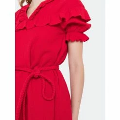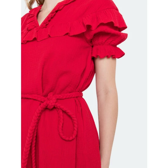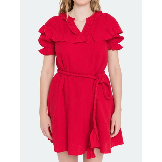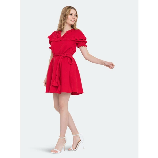 Looking for something fun and flirty? This red mini dress has a beautiful ruffle detail that will have you looking your best. Plus, the thick waist strap ensures that you stay comfortable all night long.