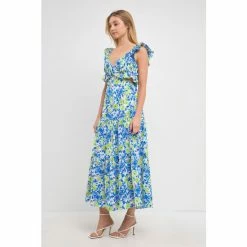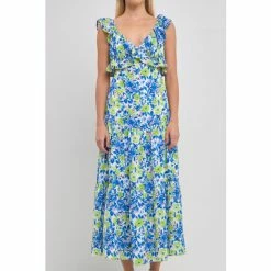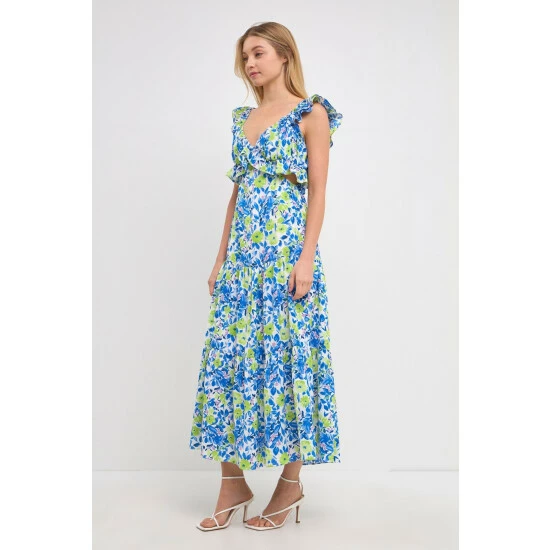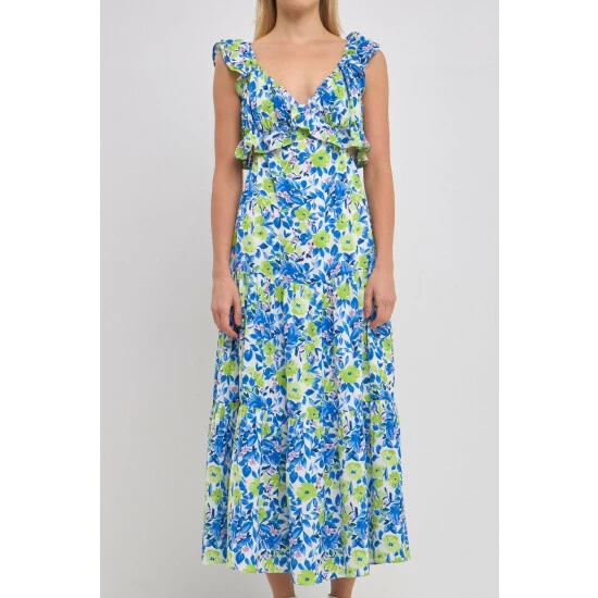 This gorgeous maxi dress is perfect for your next formal event. Featuring a v neckline, ruffled neck and waist, and a tiered skirt, this dress is sure to turn heads. The sleeveless design and center back zipper closure make it easy to get in and out of, while the maxi length gives you the coverage you need.