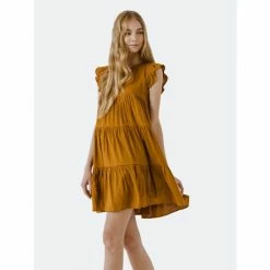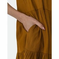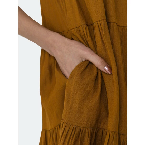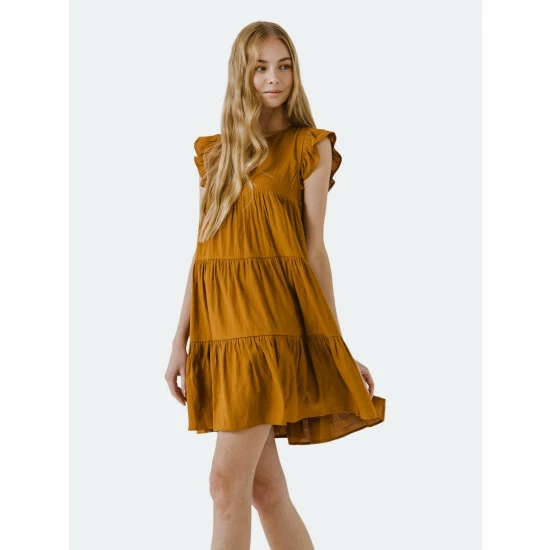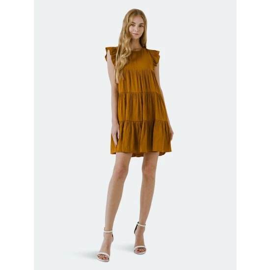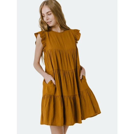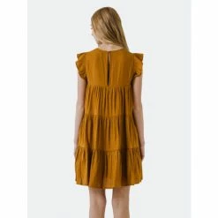 – Crew neck- Back keyhole- Ruffle sleeveless- Ruffle tiered dress- LV->EF- Total length: 34.50″, Bust: 36″