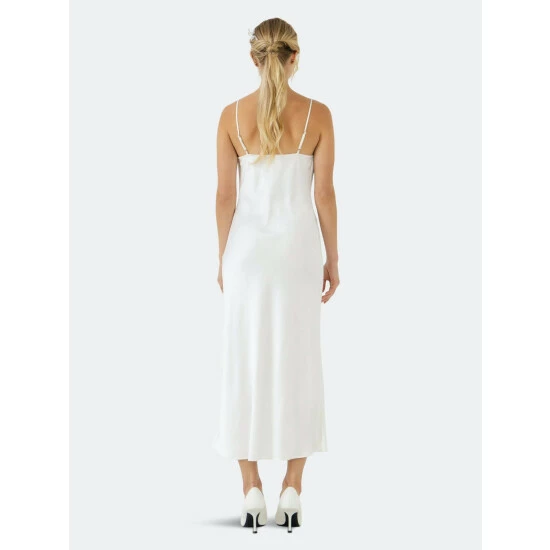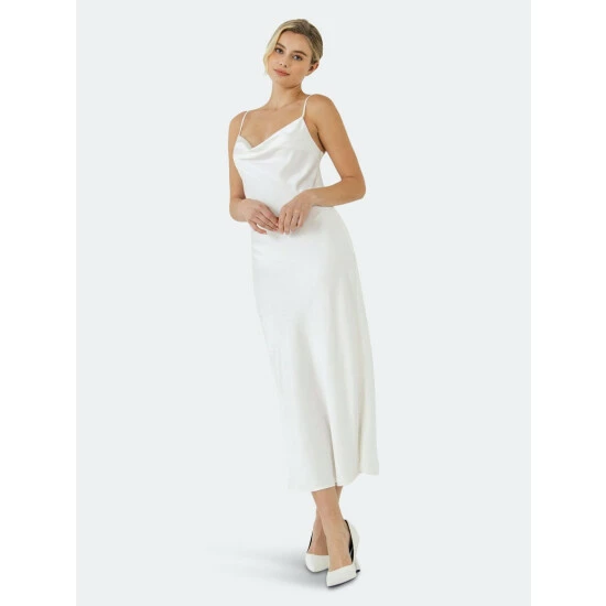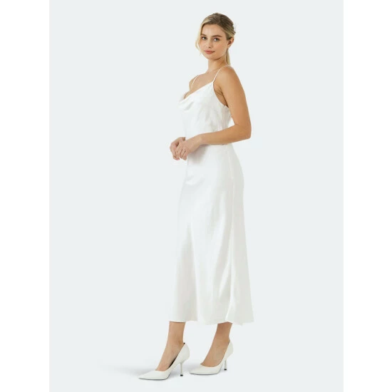 Looking for an easy-to-style midi dress? Look no further than the Satin Midi Dress! This versatile slip dress can easily take you from a day at the office to a night out on the town. The perfect white dress for all your summer events, this piece is also super flattering and will have you feeling like a glamazon. With its simple style, the Satin Midi Dress can be dressed up or down with ease – just add some statement jewelry and heels for a sophisticated look, or go casual with sandals and a denim jacket.