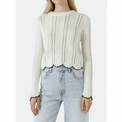 You’ll love the classic style of this English Factory sweater. The flattering round neckline and classic style will make this sweater a favorite for the seasons to come. Dress it up with a skirt or wear it casually with jeans.