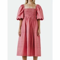 Light and airy, this dress is a transitional favorite. With a scallop detail on the sleeves and pintuck detail, this dress will keep you feeling light and carefree all day long. Wear this dress to a summer wedding or brunch with friends.
