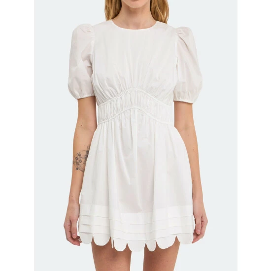 This white mini dress is perfect for spring and summer weather! The 100% cotton fabric is lightweight and breathable, making it a great choice for hot days. The scallop detail on the sleeves adds a touch of feminine flair, while the relaxed fit ensures that this dress will look great on every figure. Whether you’re headed to a party or just running errands, this dress is sure to make you feel beautiful and confident.