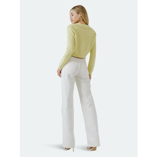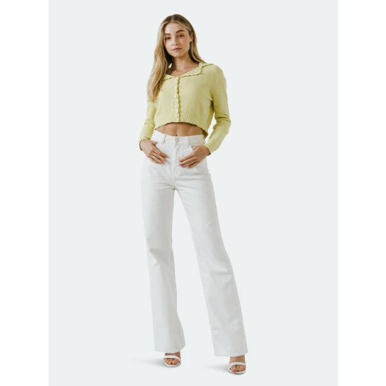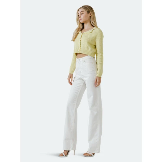 – Collar detail- Cardigan- Cropped- Button closure- Scallop detail- Total length: 17.50″ bust: 33″