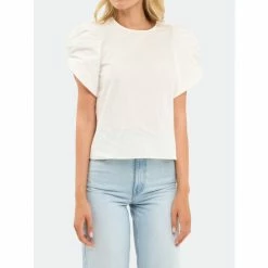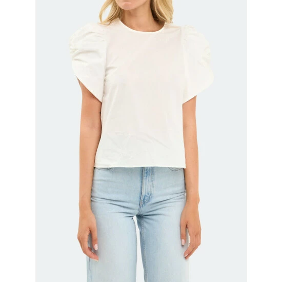 Up your style game with this shirring detail sleeve top. With puff shirring, slit at center of sleeve, and round neckline, this top is perfect for a day at work or a night out on the town. Made of 100% poplin, it is sure to be a staple in your wardrobe. Hand wash cold and do not tumble dry for best results.