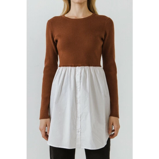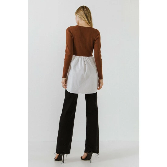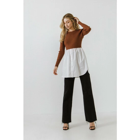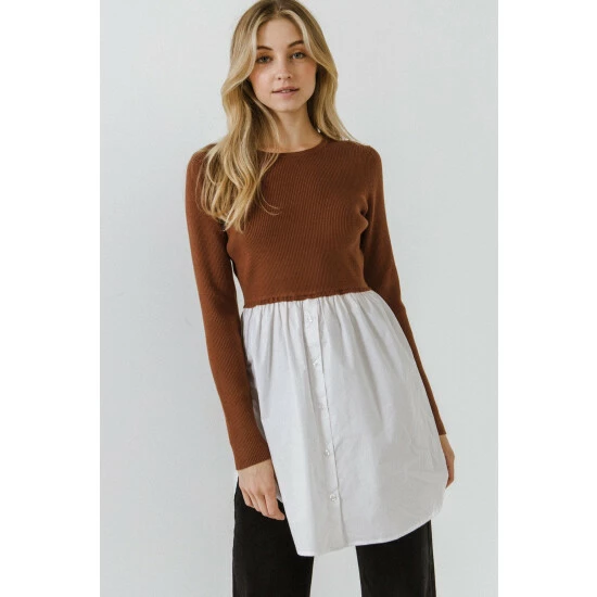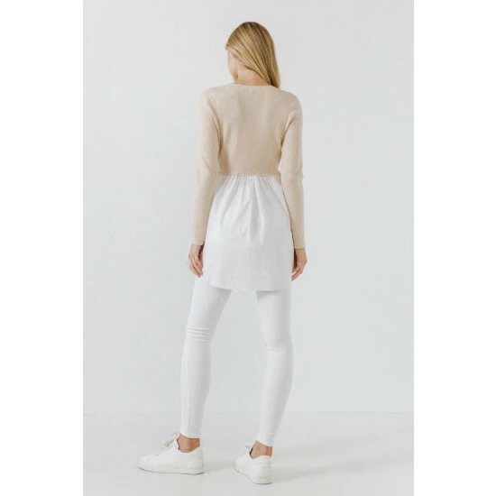 Get a layered sweater effect with this button-up shirt sweater. You’ll love the cropped fit, longline silhouette, and classic button shirting that is always in style. This sweater is made from a soft sweater fabric that is comfortable and easy to wear. Wear this sweater with your favorite pair of jeans for a polished casual look.