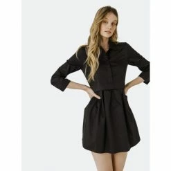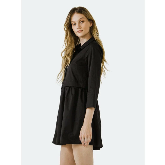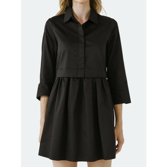 – Solid woven- Collared half placket- Mini length- 3/4 sleeves- Lining- Height 5’10”(178cm) / Bust 32”(81cm) / Waist 25”(67cm) / Hip 35”(89cm)- Total length: 34″, Bust: 37″