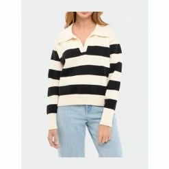 This preppy and chic Sweater is perfect for any occasion. With a classic striped design and a collar, this Sweater is both stylish and timeless. The long sleeves and V-neckline make this Sweater flattering for any body type. Dress it up with a skirt and heels for a work-appropriate outfit or dress it down with jeans and sneakers for a casual and comfortable look.