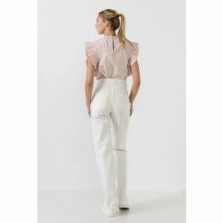 If you want to make a fun statement, this striped top is the one to wear. The loose-fitting silhouette is easy to wear with jeans or wear with a skirt for a fun look. Its keyhole back adds a cute touch.