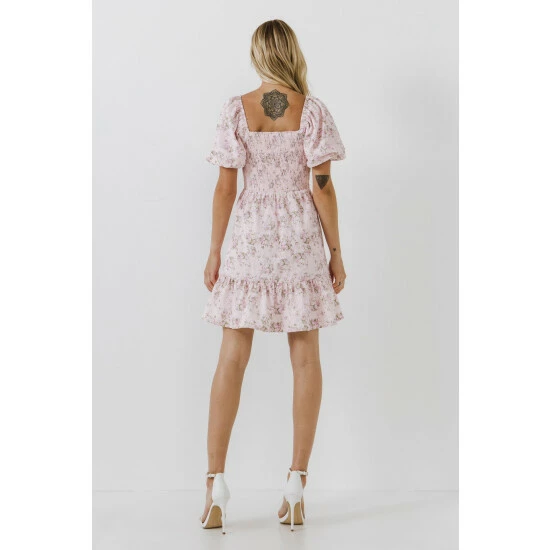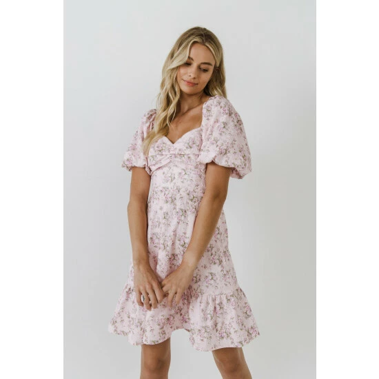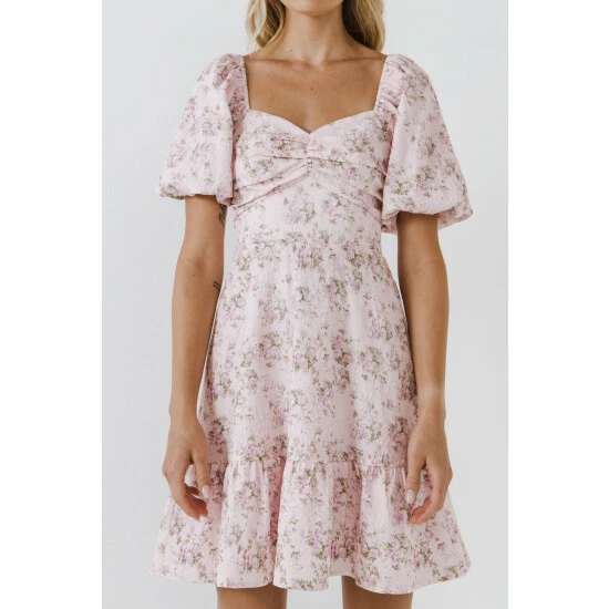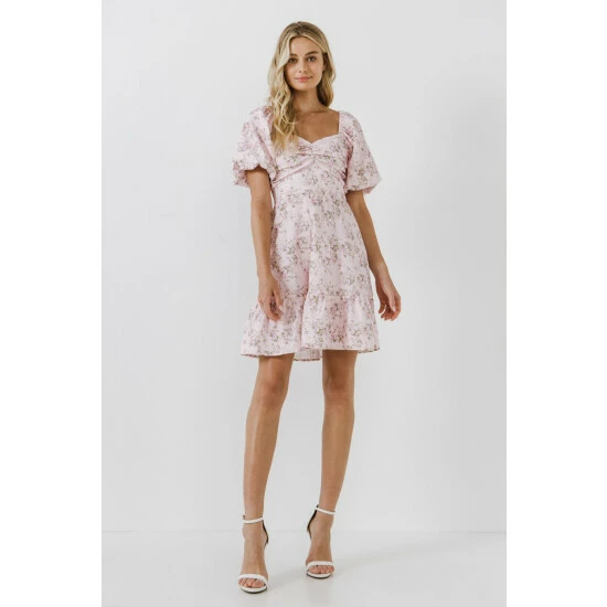 Floral printShort puff sleevesSweetheart necklineMini lengthLinedTL358D Total length: 34.50″, Bust: 33″