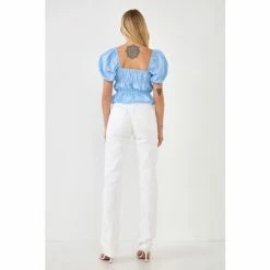This top has everything you need to make a statement. The short puff sleeves and front tie detail are playful and stylish, while the square neckline adds a touch of sophistication. Plus, the fit is flattering on everyone. Whether you’re dressing up for a special occasion or just want to add a little flair to your everyday look, this top is a great choice.